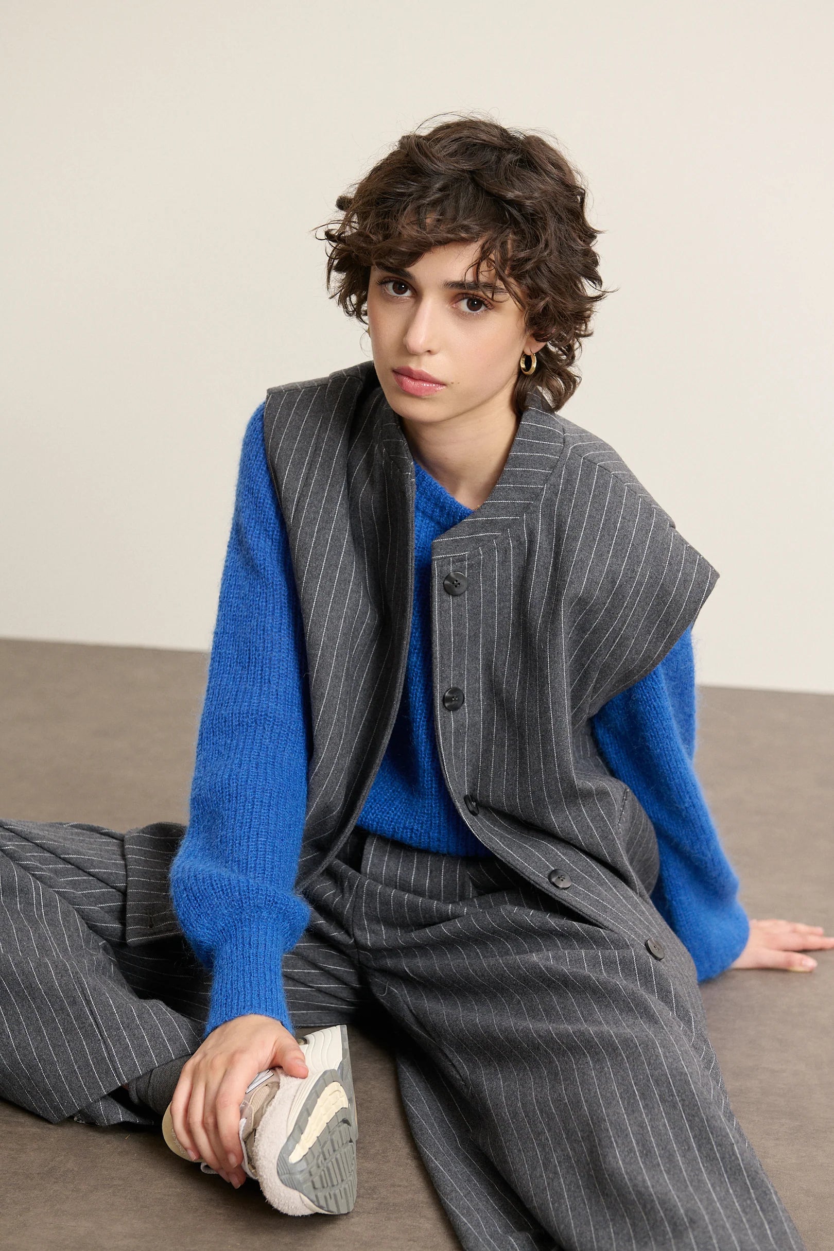 BRÉSIL est une veste sans manches, au coloris gris, pensée pour la saison. Alliant confort et raffinement, elle se distingue par ses poches italiennes, sa doublure douce et ses boutons effet corne. Une pièce facile à superposer, pour une allure glamour et sophistiquée au quotidien.